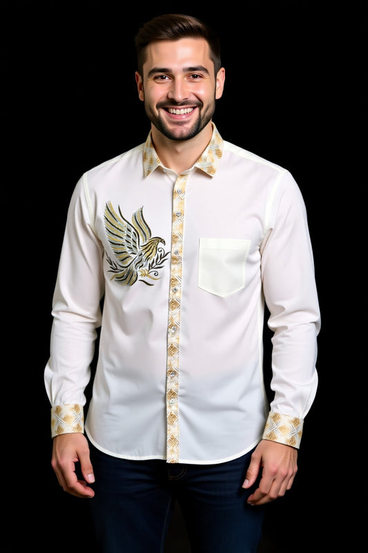 Cream Eagle Embroidery Designer Shirt – By Shree Omkar