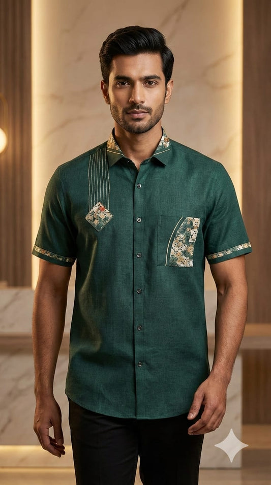 Bottle Green Designer Shirt for Men – Available in all sizes (M-3XL) | Shree Omkar