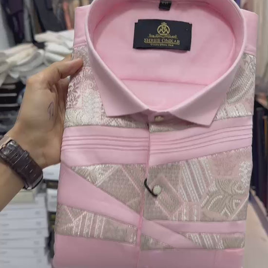 Baby Pink Designer Shirt for Men – Premium Satin Cotton | Shree Omkar