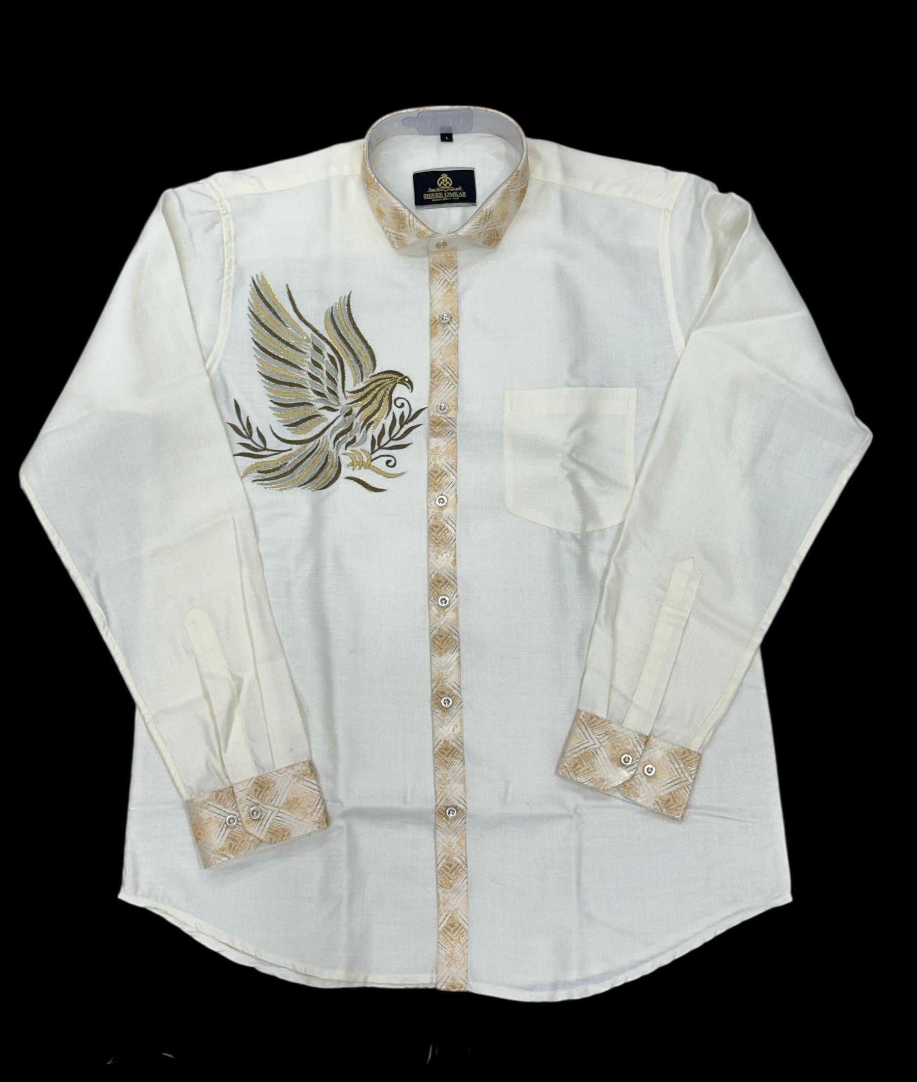 Cream Eagle Embroidery Designer Shirt – By Shree Omkar