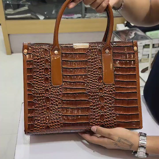Add timeless elegance to your accessory collection with this Dark Brown Glossy Croc-Texture Handbag Set for Women, exclusively from Bagifyy. This premium 3-in-1 ladies handbag combo blends fashion and functionality for women who love to carry a statement piece.