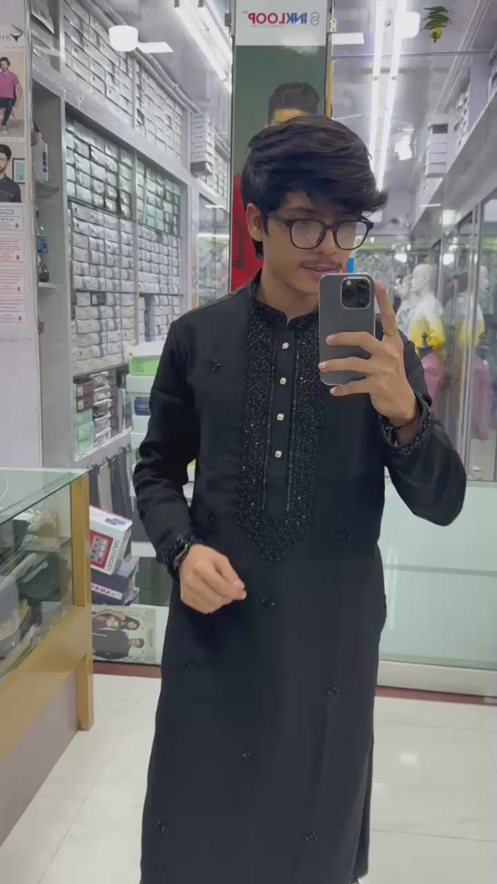 - Premium Pure Jet Black kurta with rich hand embroidery