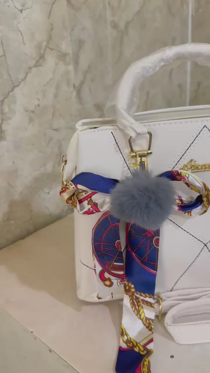 Step into elegance with the Ivory Charm Handbag by Bagifyy – a perfect blend of class and everyday utility. Crafted from high-quality PU leather with a soft shine, this bag features a modern geometric stitch design, gold-tone hardware, and a stylish scarf and pom-pom charm for a chic finishing touch.