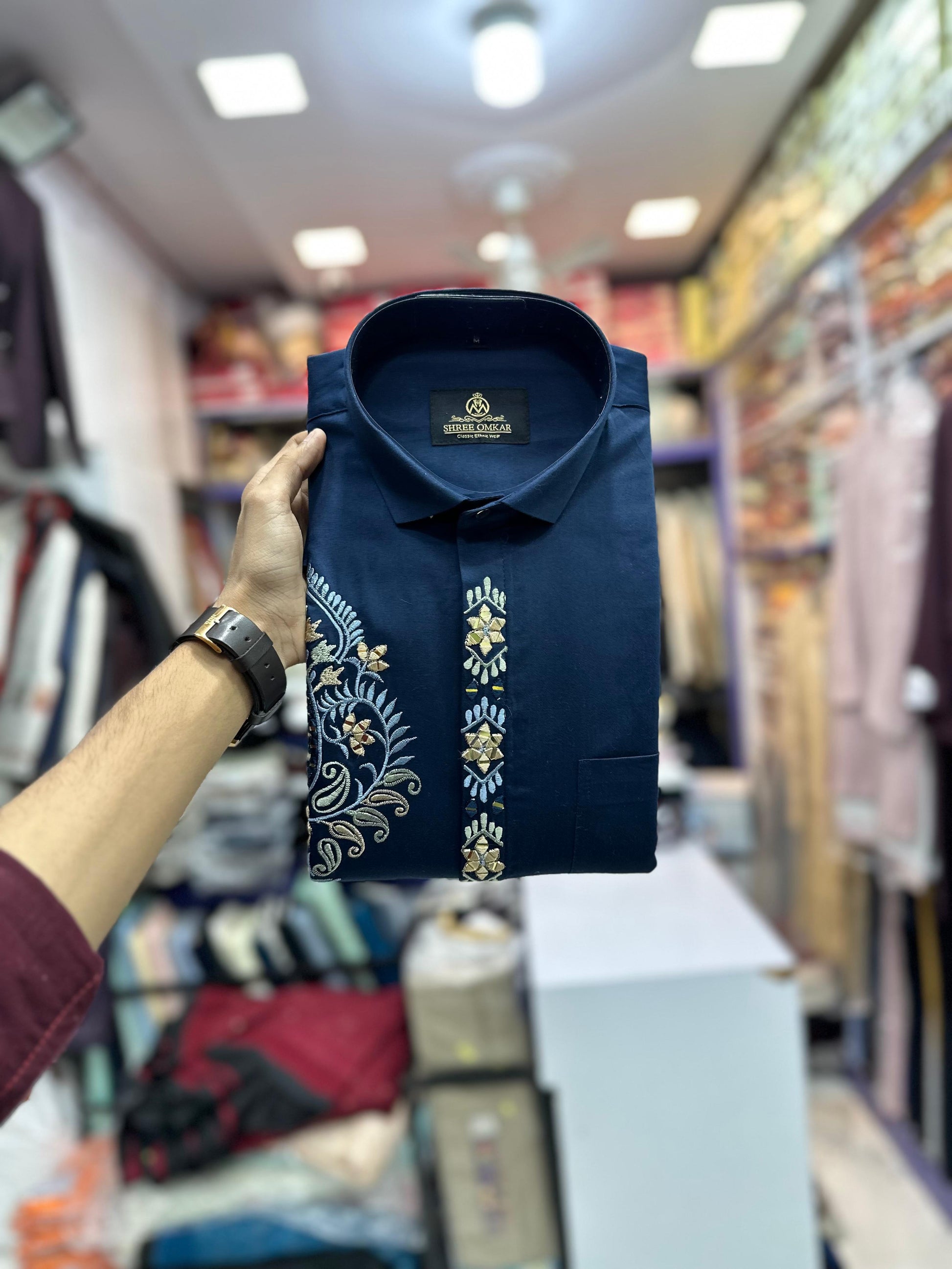 Navy Blue Designer Jethalal Shirt – A Statement of Elegance
